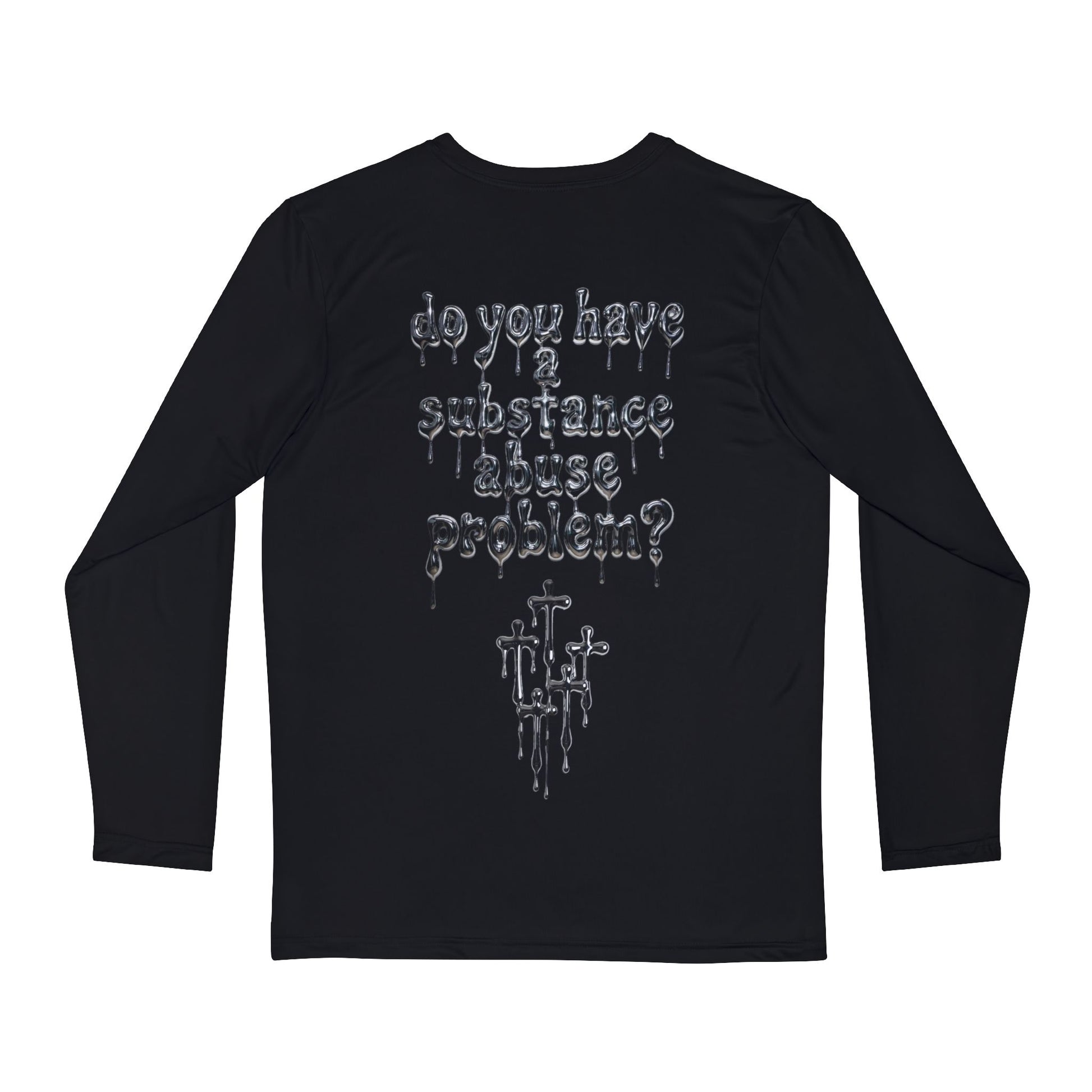 A lightweight long-sleeve shirt that speaks in hushed, moody tones. The soft, quick-drying polyester keeps you moving while a subtle chest emblem and a larger, dripping gothic message on the back create a quiet, rebellious look. Wear it on late nights, at underground shows, or when you want your style to feel like a conversation rather than a shout. The fitted sleeves and clean seams make it easy to layer under jackets or pair with worn denim for a lived-in, intentional outfit.